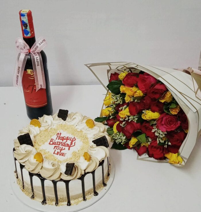 Make her feel special and loved with a beautiful themed flowers bouquet and a cake. The bouquet is large size.