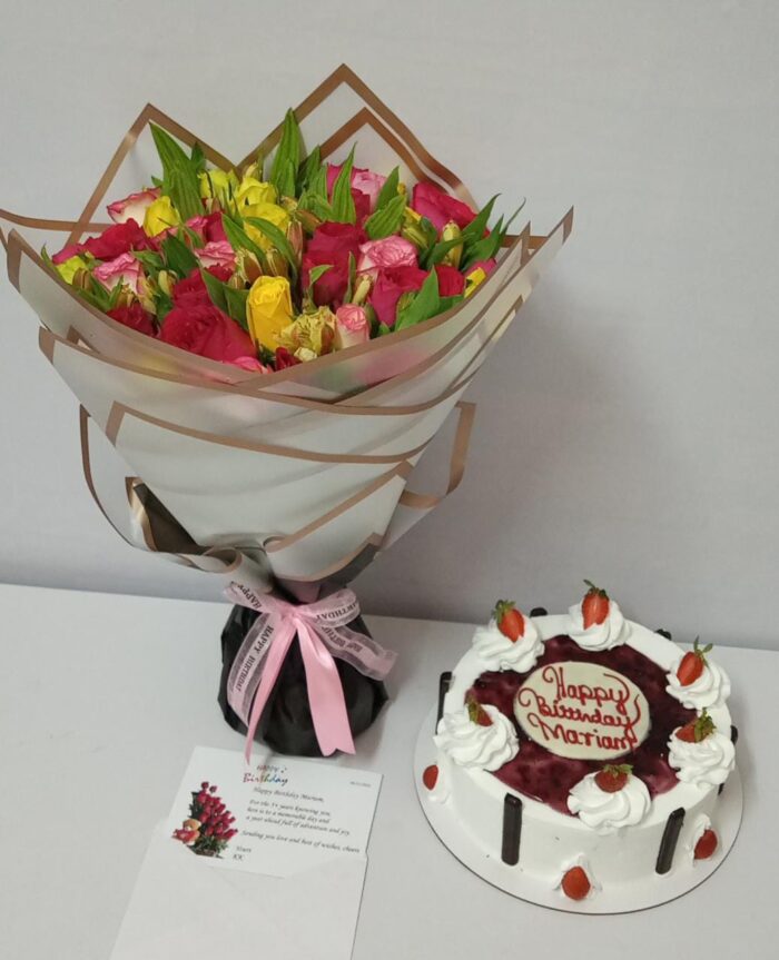 Birthday Vibe Bouquet with 1kg Whiteforest Cake