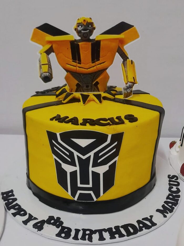 A Bumblebee Transformer themed cake to wow the young soul on their important day. The cake